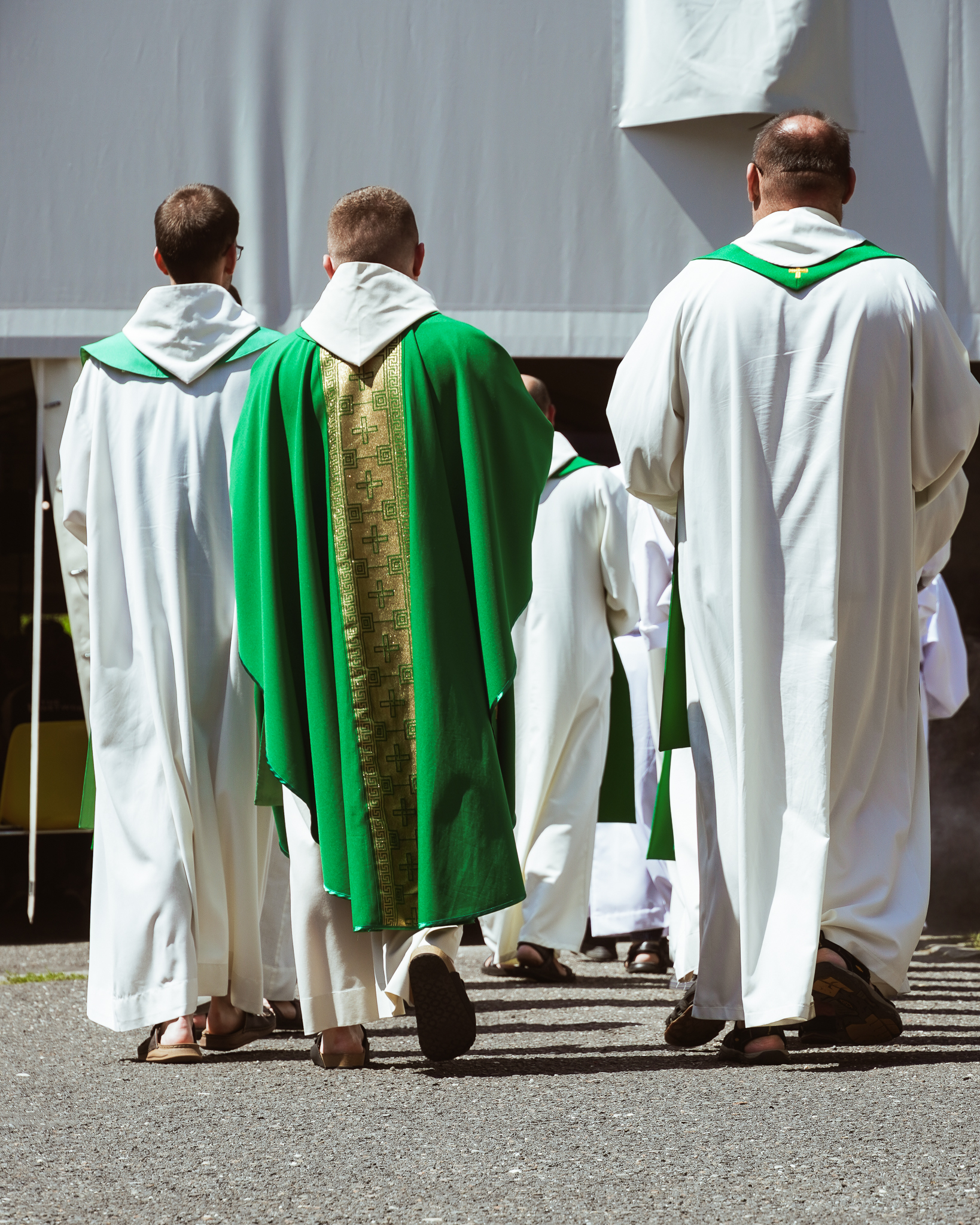 W samo południe zebraliśmy się na Eucharystii, podczas której kazanie wygłosił o. Roch Dudek OFM. Tak jak poprzedni tegoroczni kaznodzieje przywołał postać świętego, który zostawił ślad na ziemi. Tym razem mieliśmy okazję poznać postać św. Patryka, który uczy nas, że przeszłość nie powinna przekreślać przeszłości i że każdy człowiek, mimo że może znalazł się w bardzo trudnej sytuacji, może w jakiś sposób zmienić swoje życie, które przed nim.