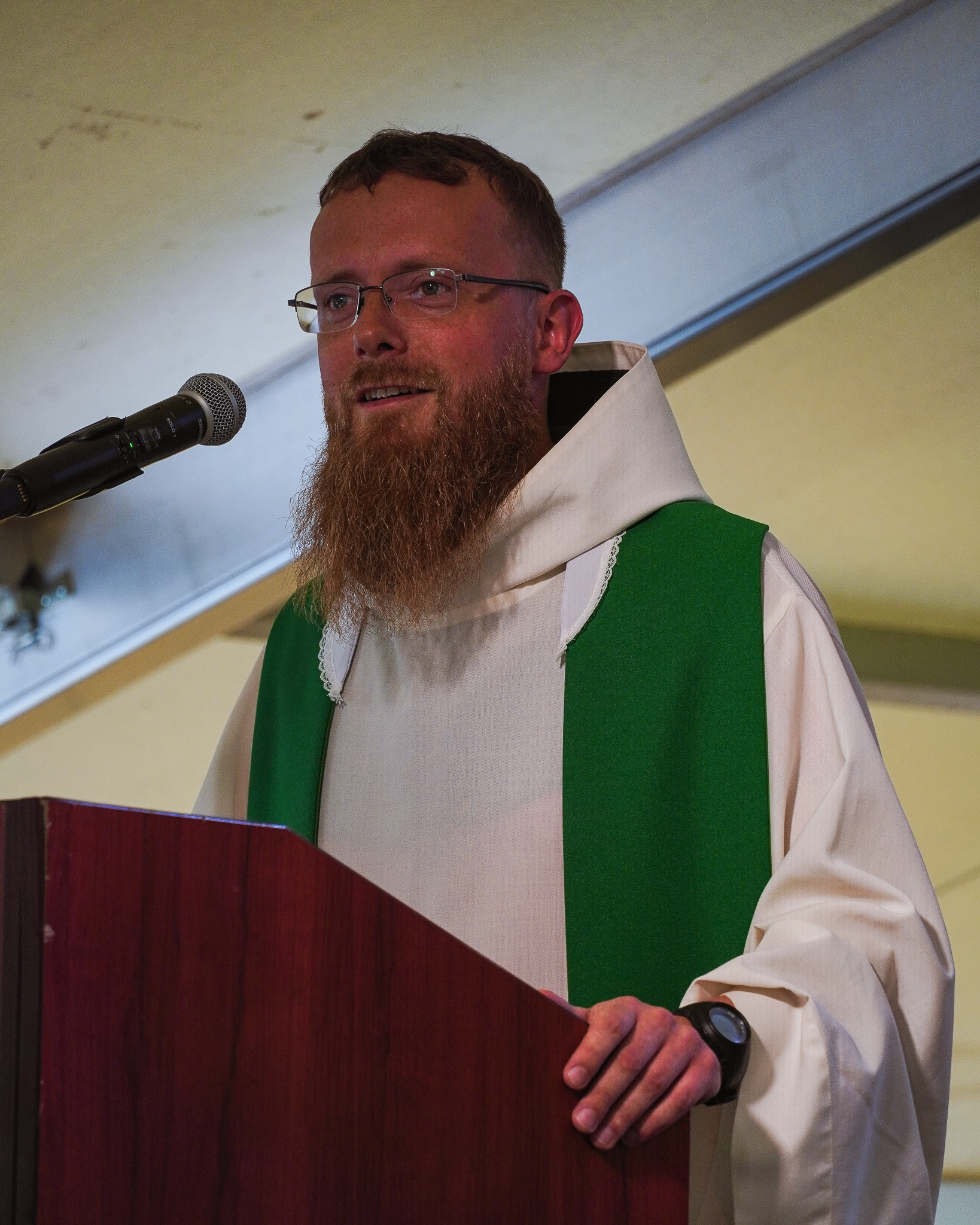 W samo południe zebraliśmy się na Eucharystii, podczas której kazanie wygłosił o. Roch Dudek OFM. Tak jak poprzedni tegoroczni kaznodzieje przywołał postać świętego, który zostawił ślad na ziemi. Tym razem mieliśmy okazję poznać postać św. Patryka, który uczy nas, że przeszłość nie powinna przekreślać przeszłości i że każdy człowiek, mimo że może znalazł się w bardzo trudnej sytuacji, może w jakiś sposób zmienić swoje życie, które przed nim.